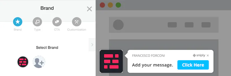 Il funzionamento di Sniply è molto semplice. La prima cosa da fare è creare un “brand“. Un brand non è altro che un raggruppamento di call-to-action e link in base appunto al marchio o al sito web cui si riferiscono. È utile se gestisci diversi siti web per avere statistiche separate. Inoltre il brand determina il logo che verrà inserito nelle “call-to-action”.